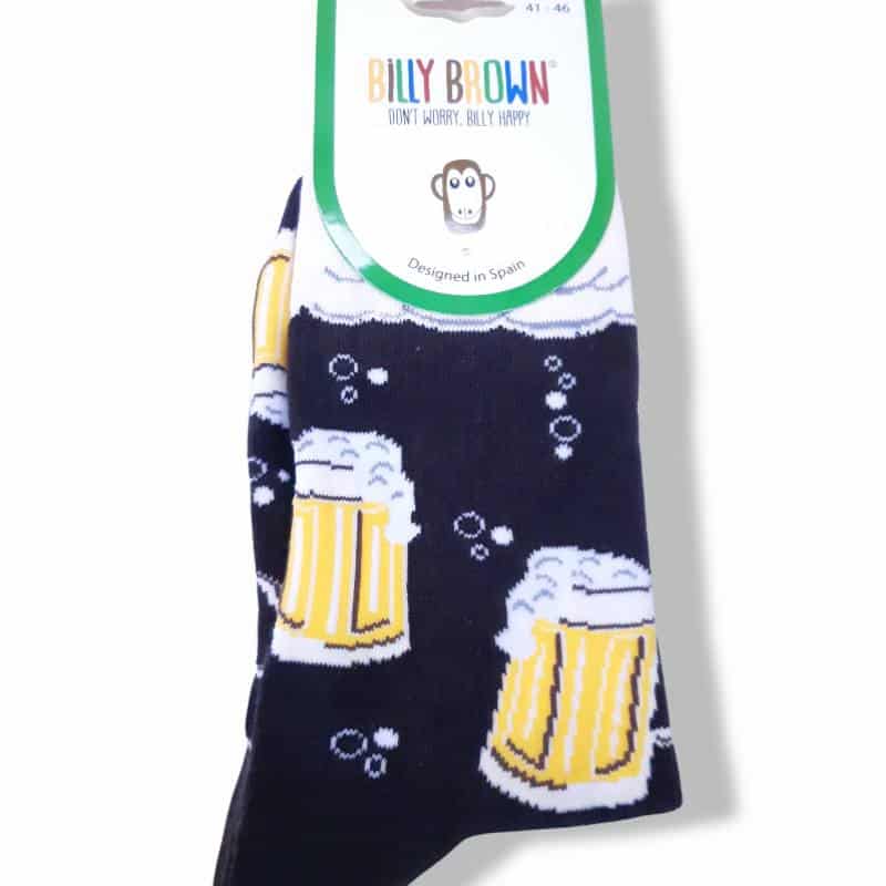 Calcetín de Billy Brown con jarras de cerveza. Disponemos de otros modelos con limones.