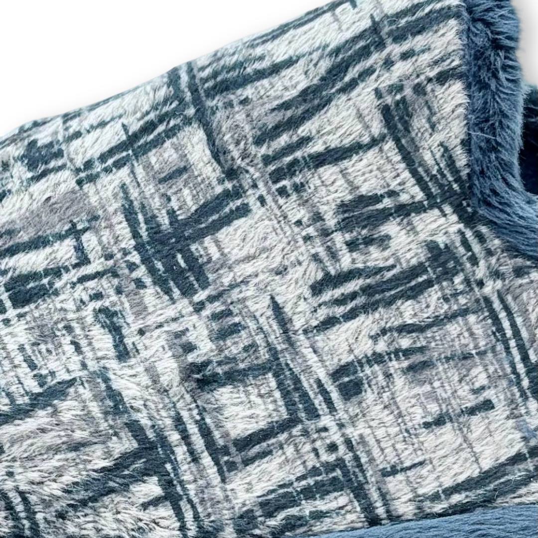 Su exterior de tejido suave de paño con estampado geométrico combina estilo y resistencia, mientras el interior forrado en felpa proporciona calidez y suavidad.