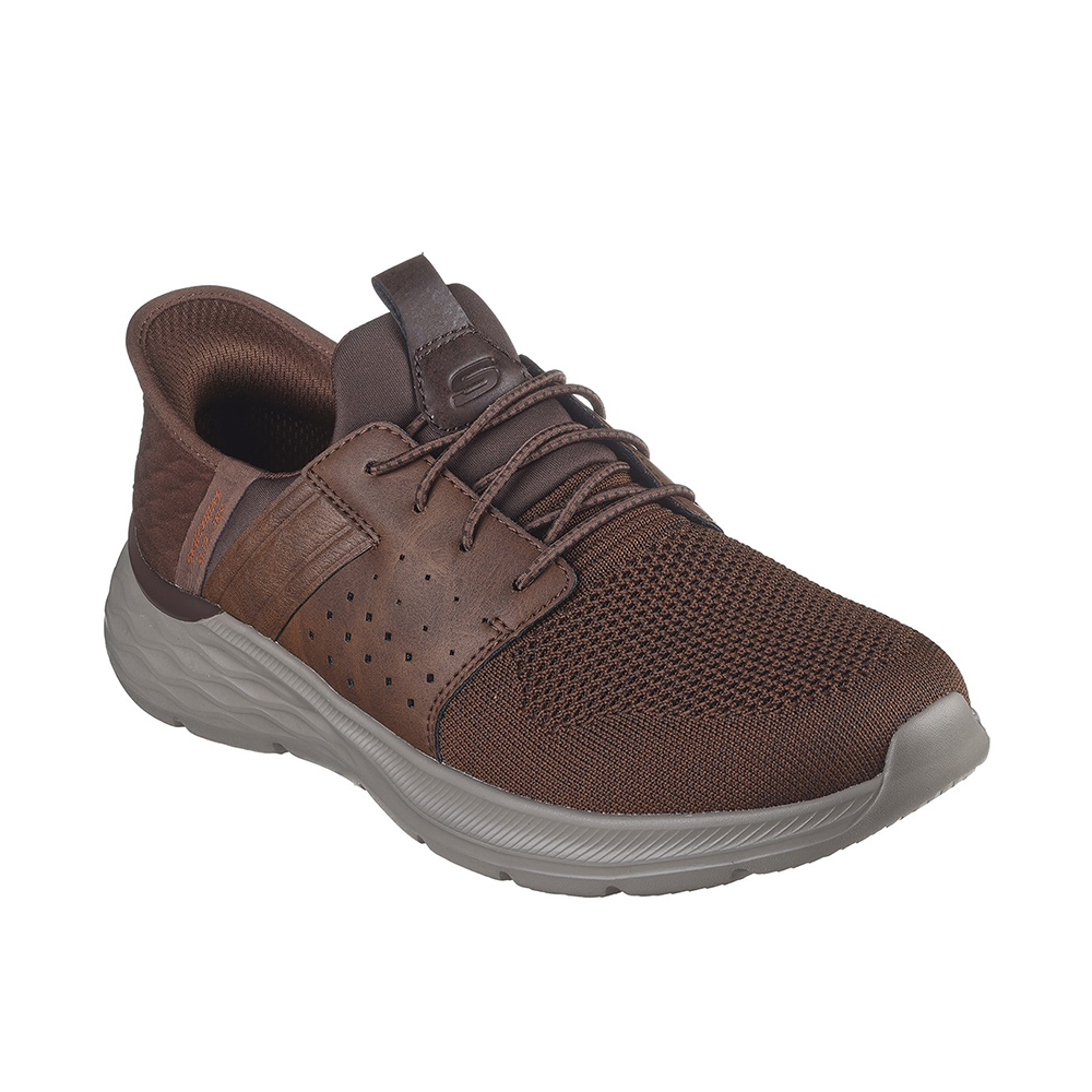 Zapatillas para hombre Skechers Garner Newick Dark Brown, con diseño Hands Free Slip-ins® y plantilla Skechers Air-Cooled Memory Foam®.