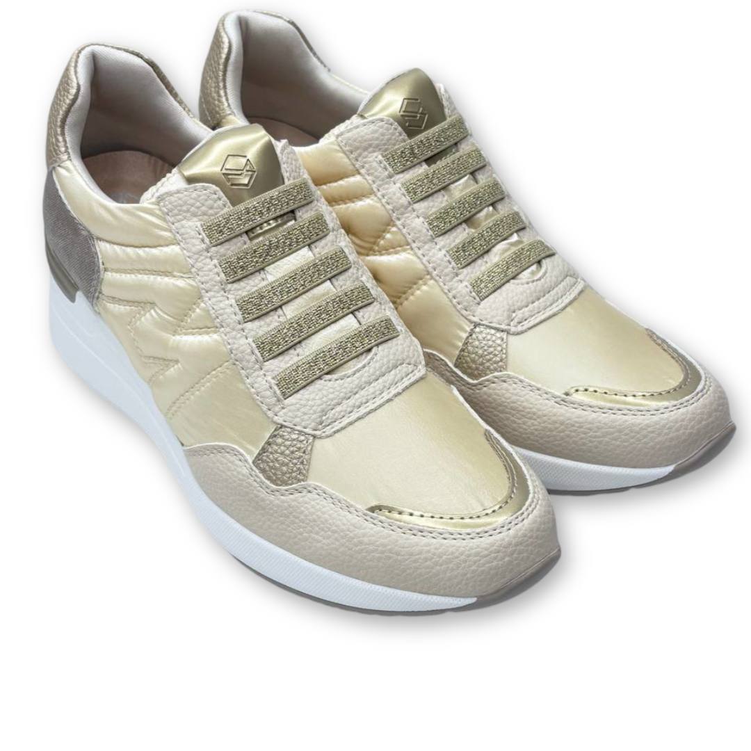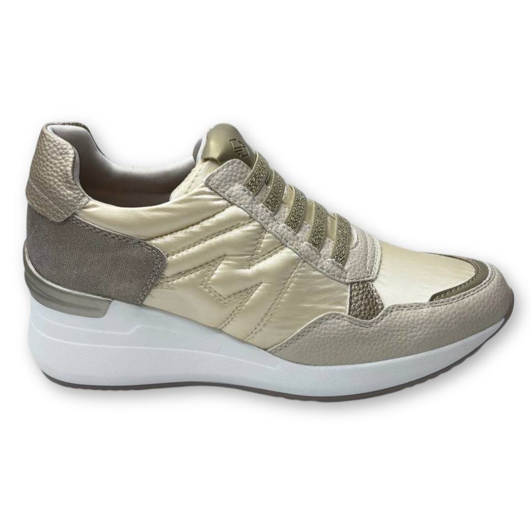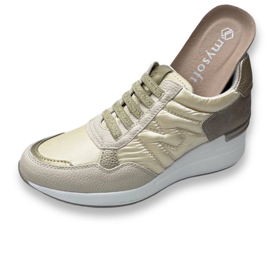 Las Mysoft 25M250 son la elección ideal para mujeres que buscan combinación perfecta entre estilo, comodidad y altura. Estas zapatillas deportivas con plataforma en color beige ofrecen un diseño moderno y sofisticado, con una mezcla de materiales que aportan un toque de elegancia y textura. Su parte superior combina textil transpirable y vegano con acabados en relieve, brindando durabilidad y un ajuste perfecto al pie.