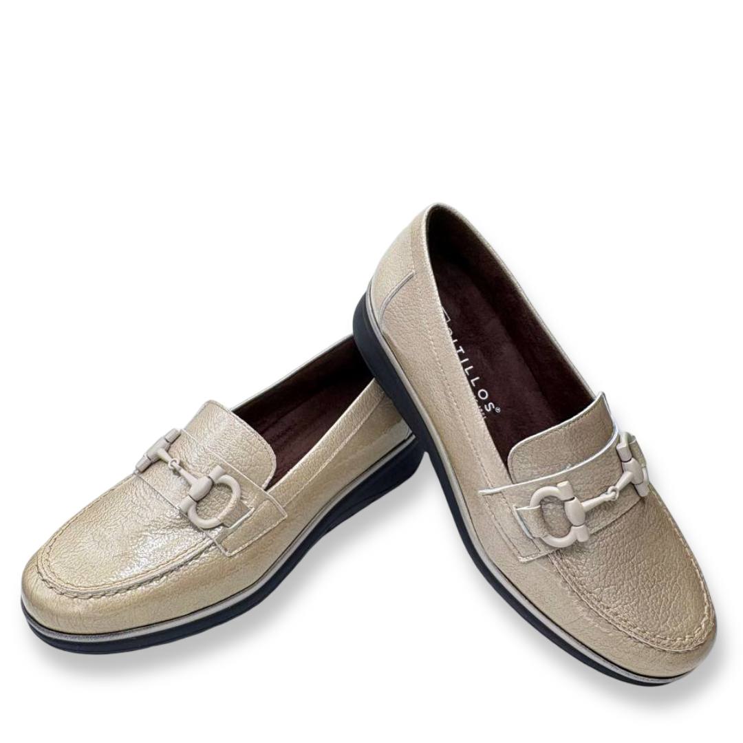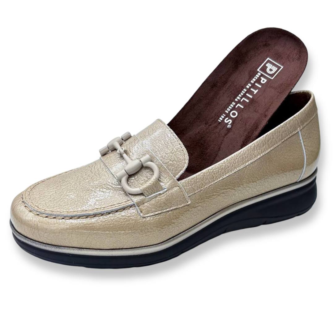 El mocasín PITILLOS 10701 color piedra y negro está pensado para mujeres que buscan estilo casual con total comodidad. Su corte en piel acharolada combina tonos neutros con un diseño actual y funcional.