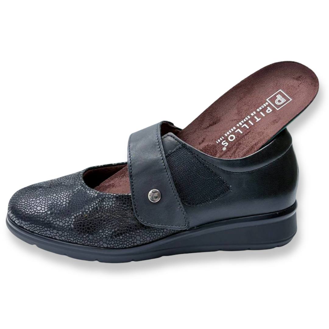 Los zapatos PITILLOS 10712 negros para mujer destacan por su gran ligereza y flexibilidad. Fabricados en piel suave combinada con diseno de mercedita, ofrecen un ajuste perfecto al pie, ideal para quiénes priorizan la comodidad. Esta temporada traen la piel con un poquito de brillos en la parte delantera, dándole un toque más elegante y sofisticado.