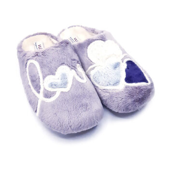 ZAPATILLA MUJER VUL LADI LILA CON DISEÑO DE CORAZONES | PANTUFLAS SUAVES Y ROMÁNTICAS PARA CASA