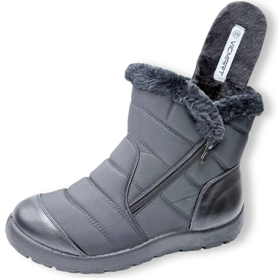 Las botas Vicmart 618-5 en color negro son el aliado perfecto para afrontar los días fríos con comodidad y estilo. Su diseño acolchado fabricado en material vegano impermeable protege del frío y la humedad manteniendo una temperatura agradable en el interior. El forro de pelo suave ofrece una sensación de abrigo extra y un tacto confortable en cada pisada.