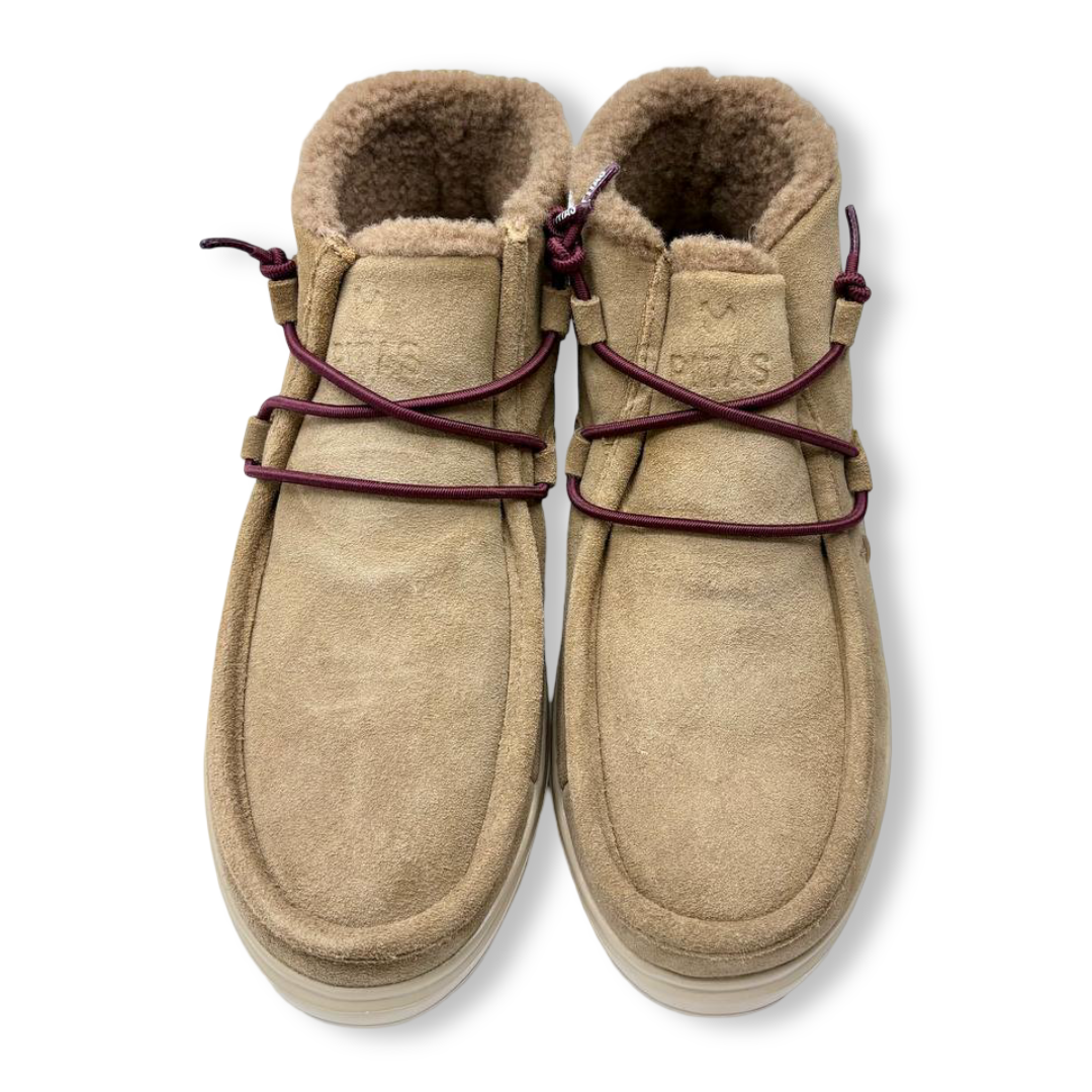 El modelo Pitas Sydney Camel combina diseño, comodidad y calidez en un botín perfecto para el invierno. Fabricado en serraje de alta calidad, destaca por su textura suave y su tono neutro, ideal para combinar con cualquier outfit. Dispone de un forro interior cálido y agradable, que mantiene los pies abrigados sin perder transpirabilidad.
