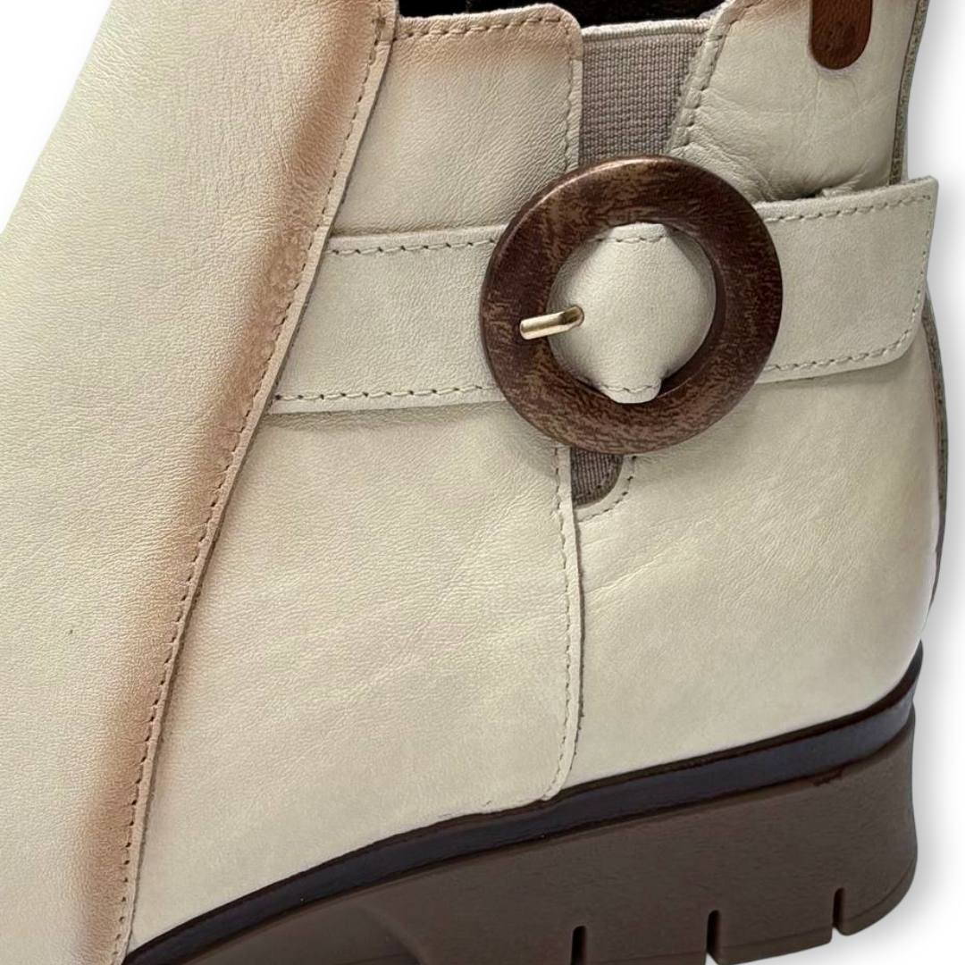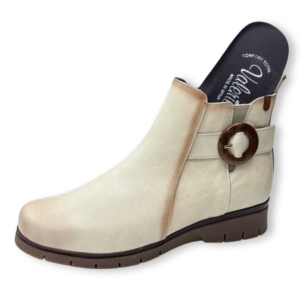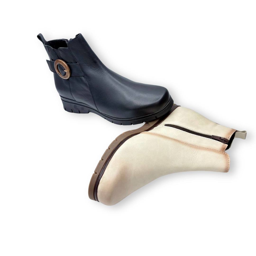 Botines Valeria’s 2389 negro y hielo para mujer, con hebilla decorativa y cremallera lateral. En piel suave y suela ligera de confort.