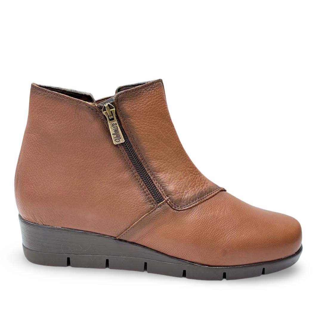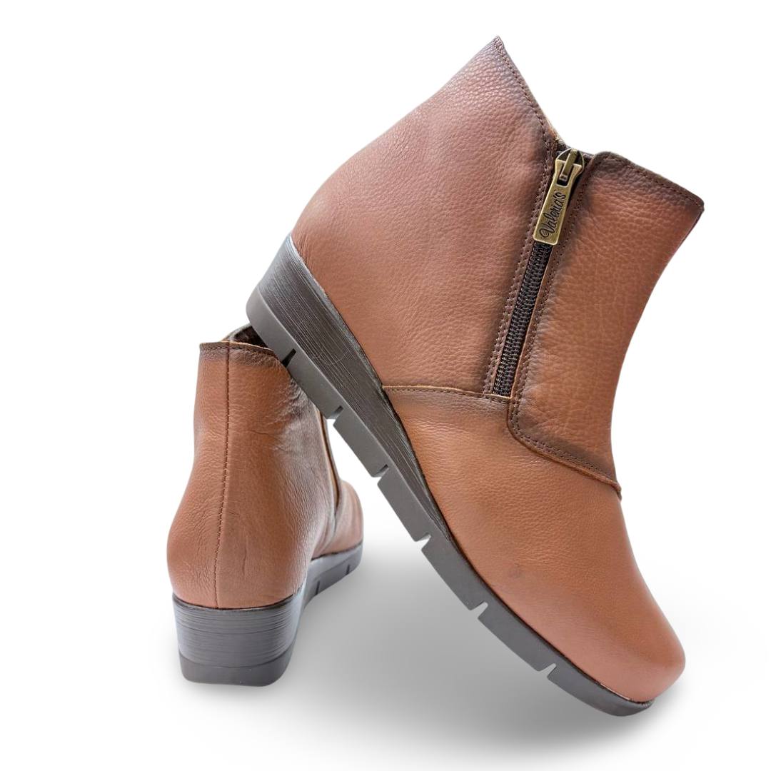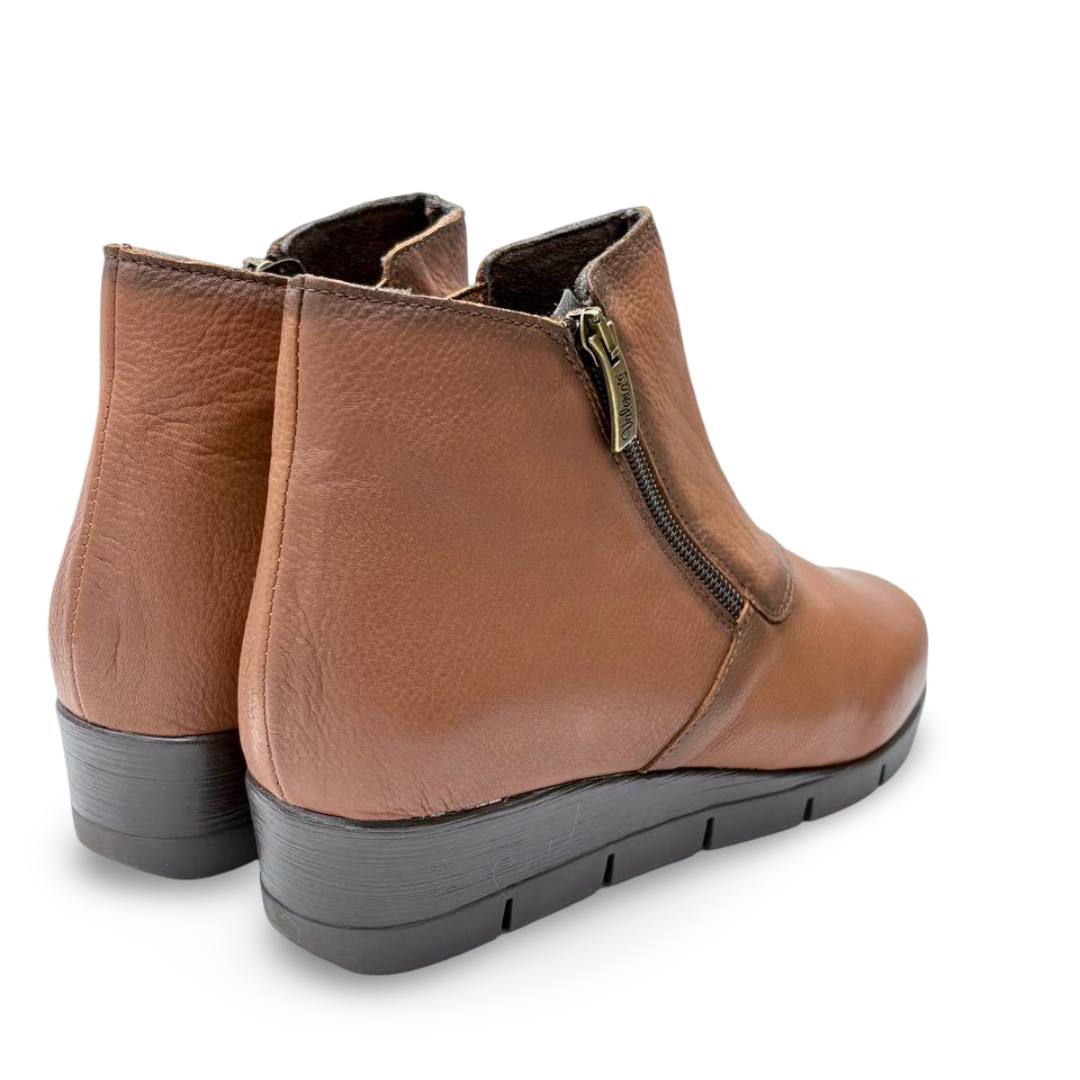 Su cremallera lateral facilita el calce, mientras su cuña eleva ligeramente la figura sin renunciar a la estabilidad.
