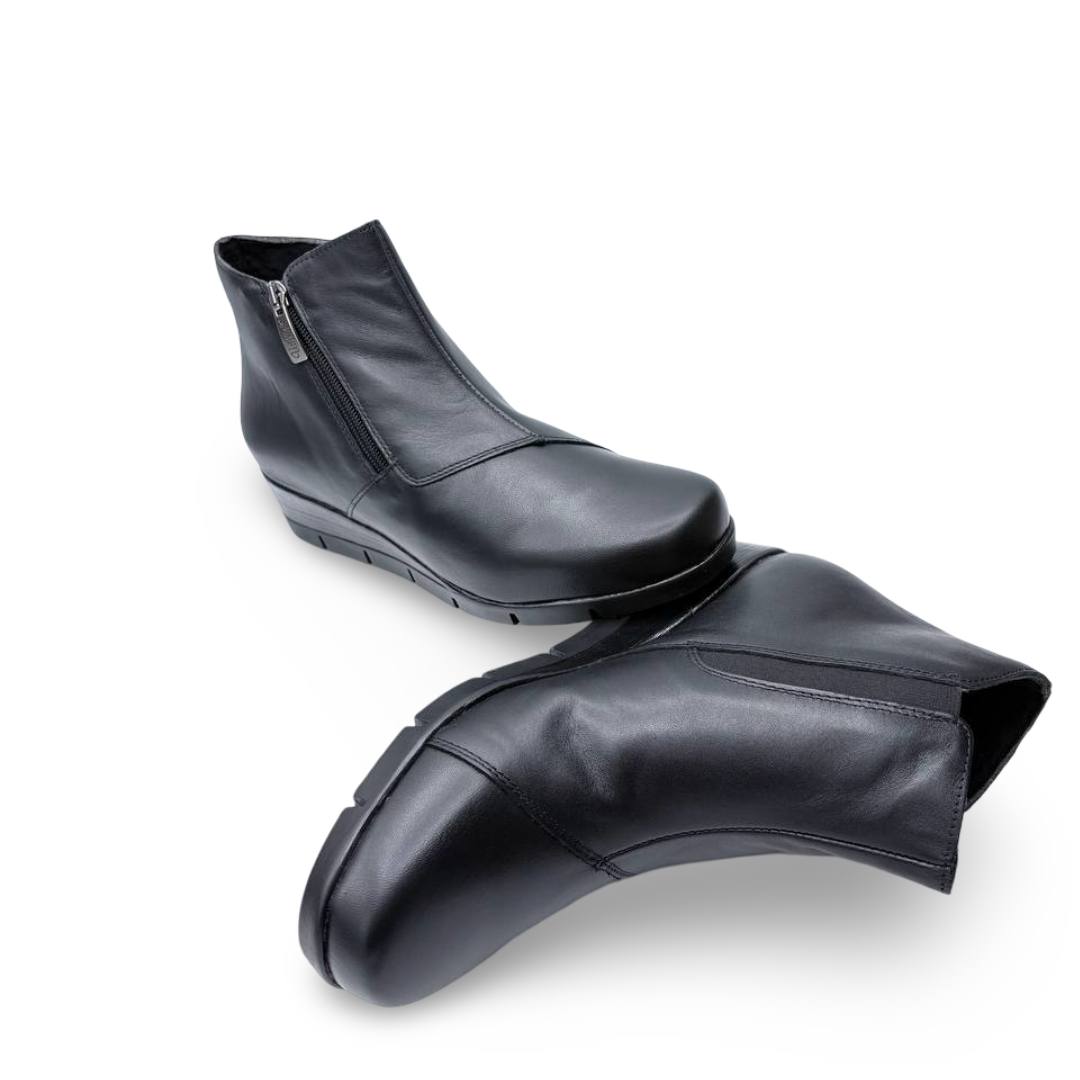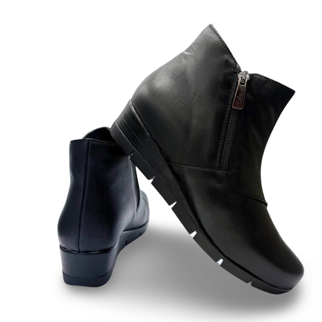 «Los botines Valeria’s 9511 en cuero y negro combinan elegancia y funcionalidad en un diseño pensado para el confort diario. Fabricados en piel natural de acabado suave, ofrecen una textura flexible y duradera.