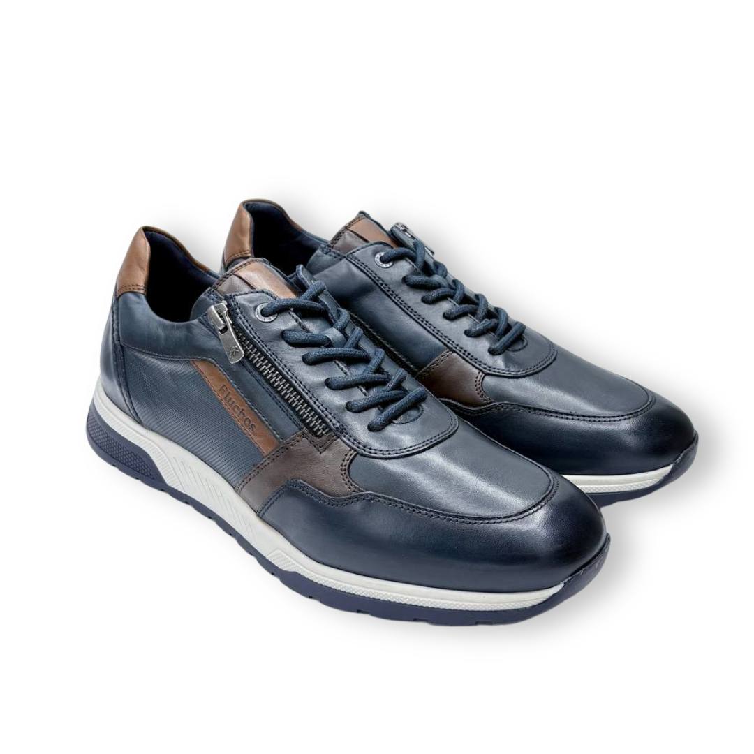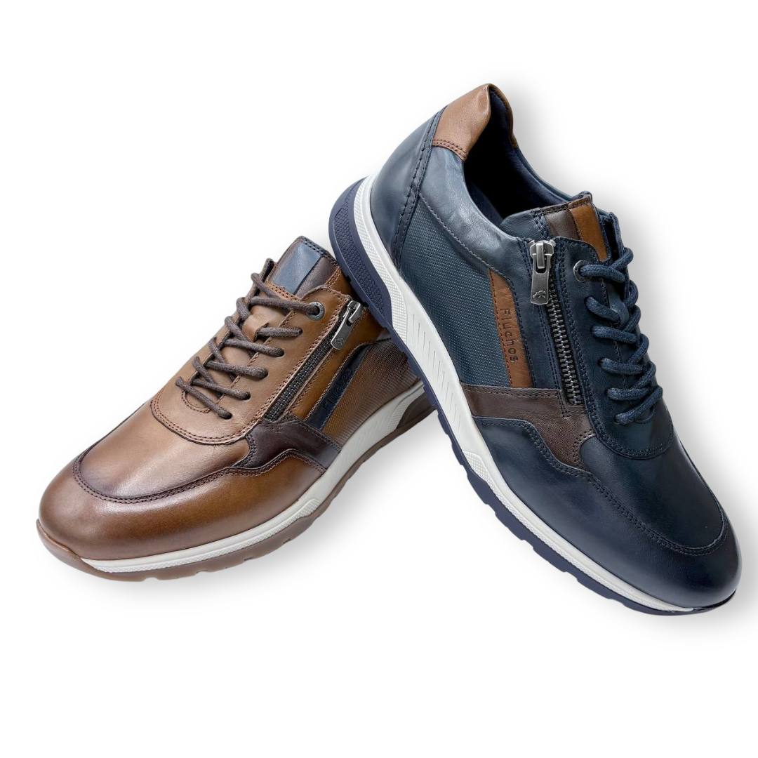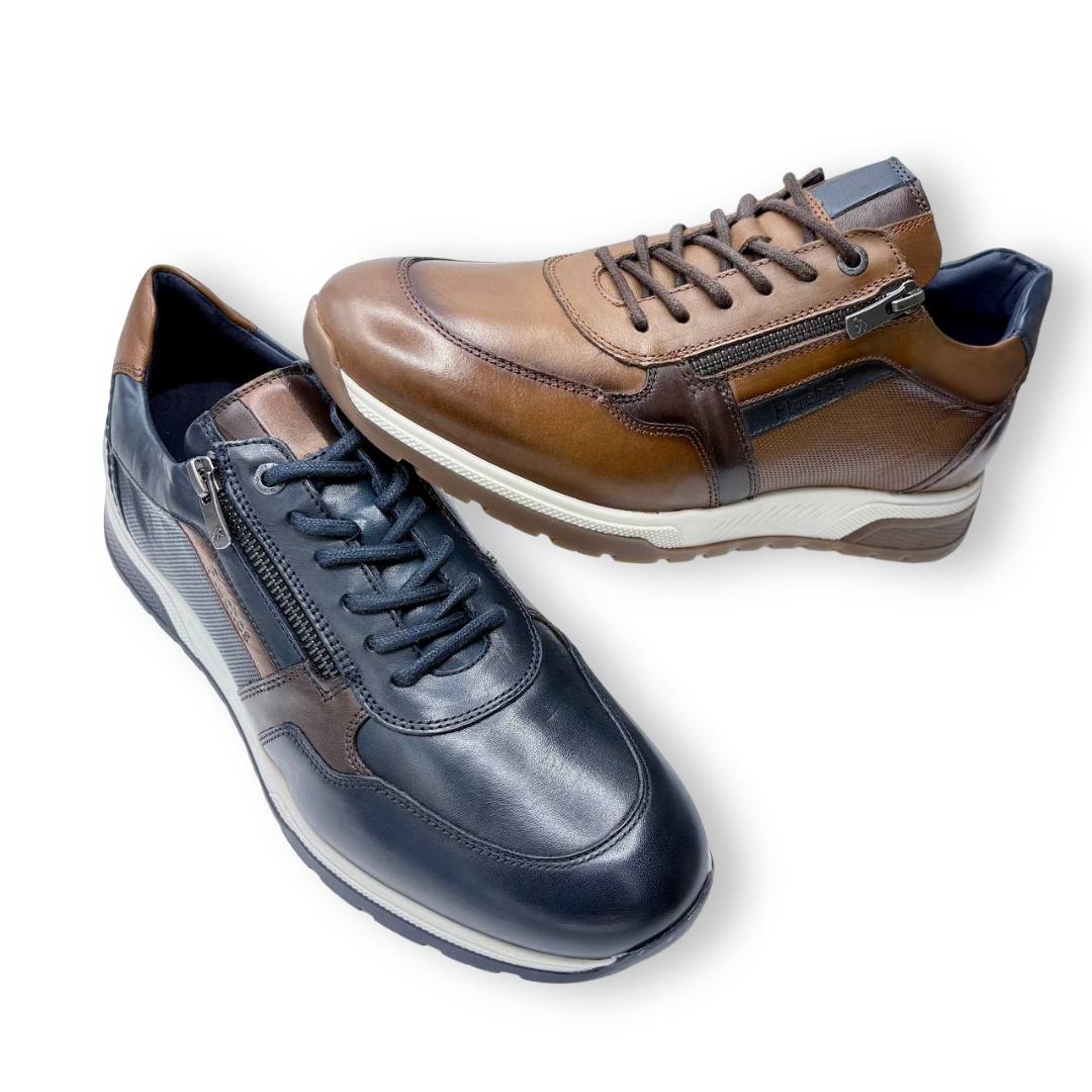 El zapato sport Fluchos Louis F1600 está disponible en dos colores: marrón y azul marino. Confeccionado en piel de alta calidad, este modelo ofrece un diseño casual con detalles sofisticados, como sus costuras resistentes y un sistema de cierre que combina cordones y cremallera lateral, lo que facilita la puesta de manera rápida y cómoda.