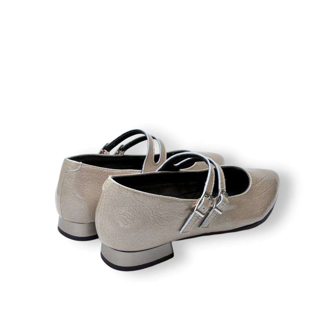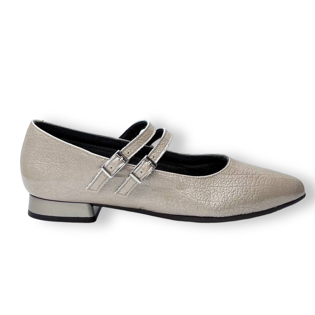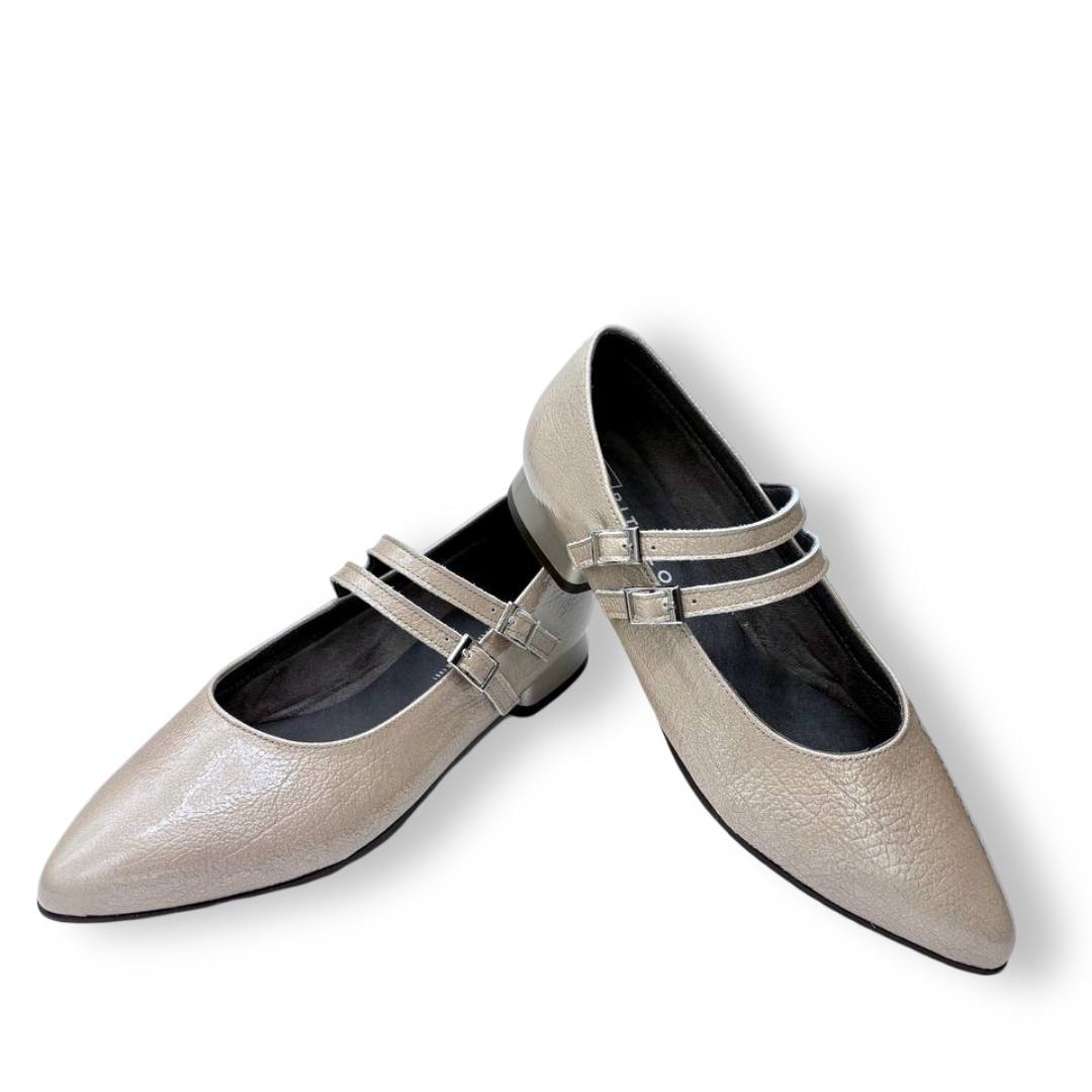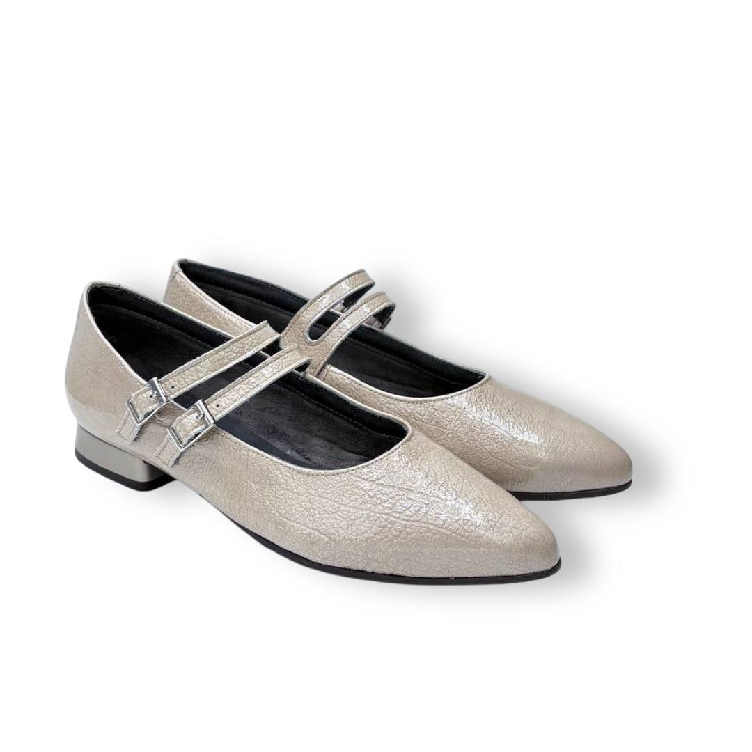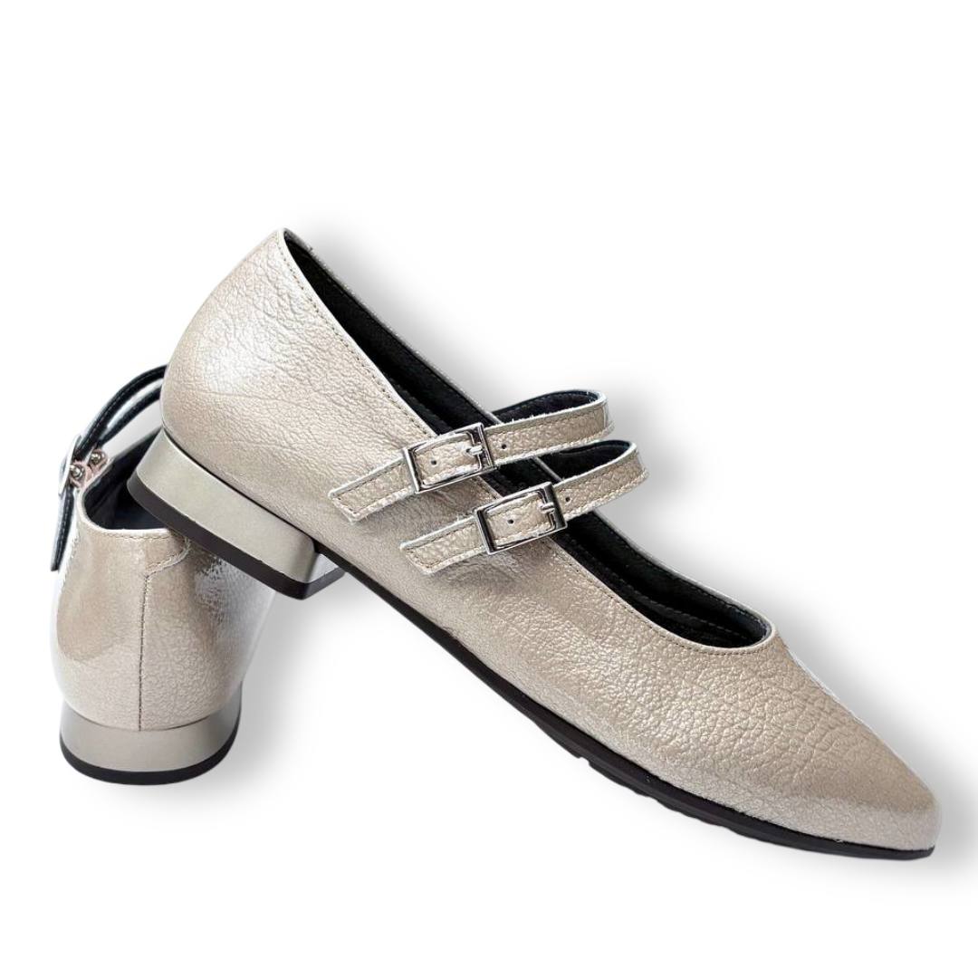 La construcción es limpia, con costuras discretas y refuerzo en talón para ganar estructura. Esta combinación de sujeción mediante doble hebilla y base estable convierte al 10840 en una alternativa perfecta para quien busca una bailarina que no ceda en el empeine y que, al mismo tiempo, conserve una estética femenina y pulida.