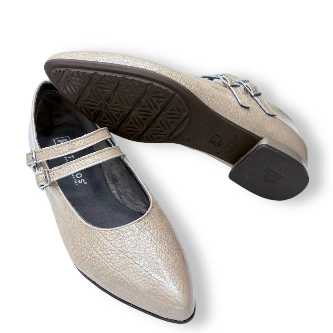 El modelo Pitillos 10840 en colores Piedra; Marrón y Negro es una mercedita plana de inspiración clásica pensada para uso diario con un plus de elegancia.