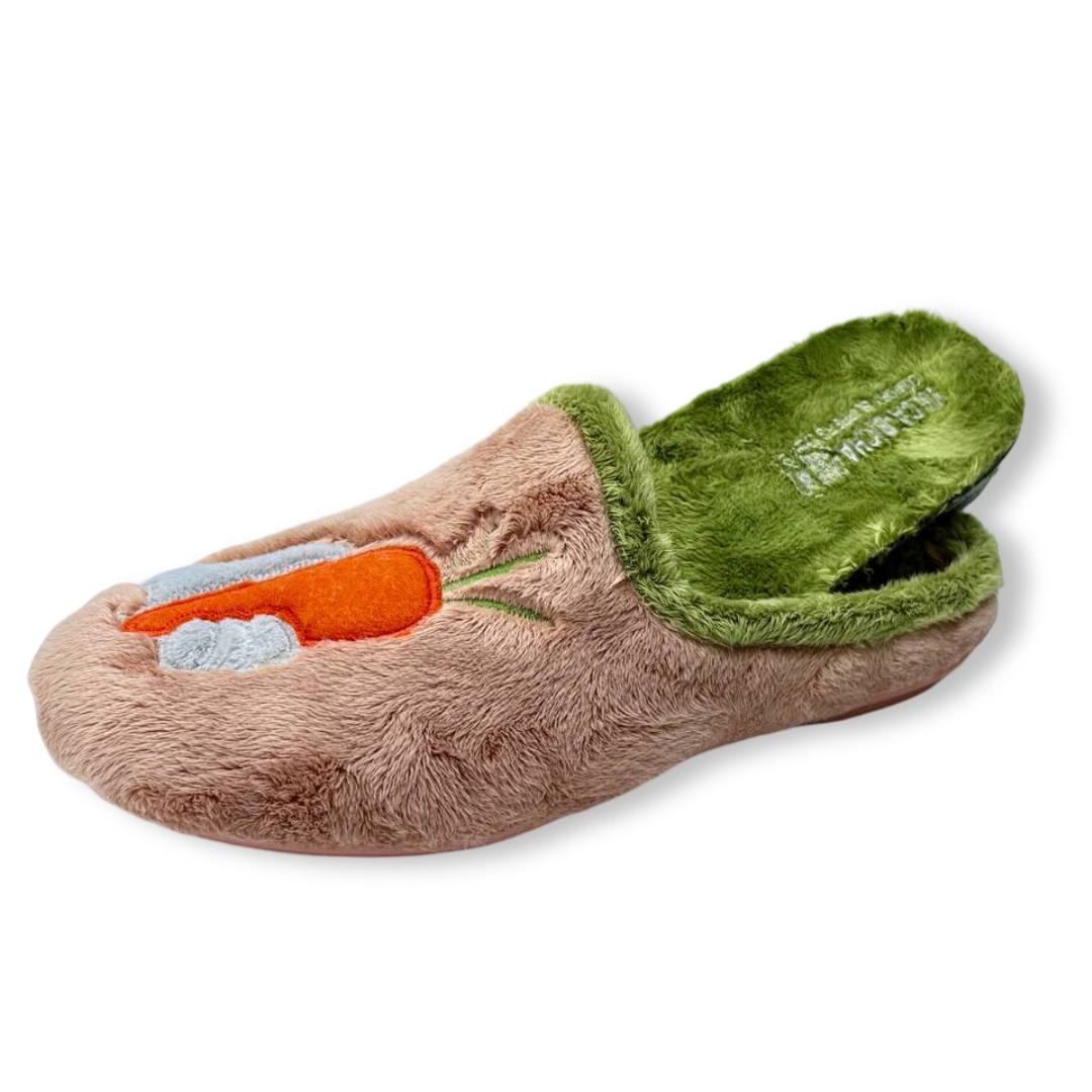 Su combinación de colores salmón y verde les otorga un toque alegre y moderno, perfecto para quienes buscan confort con un estilo juvenil. Además tienen un motivo decorativo en el empeine de conejito con zanahoria que las hace muy divertidas y bonitas. Además su plantilla extraíble te permite usarlas con tus plantillas especiales.