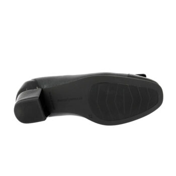 Zapato estilo Mercedes en charol para mujer Pitillos 10137 en color negro, con tacón alto de 5,5 cm y puntera cuadrada.
