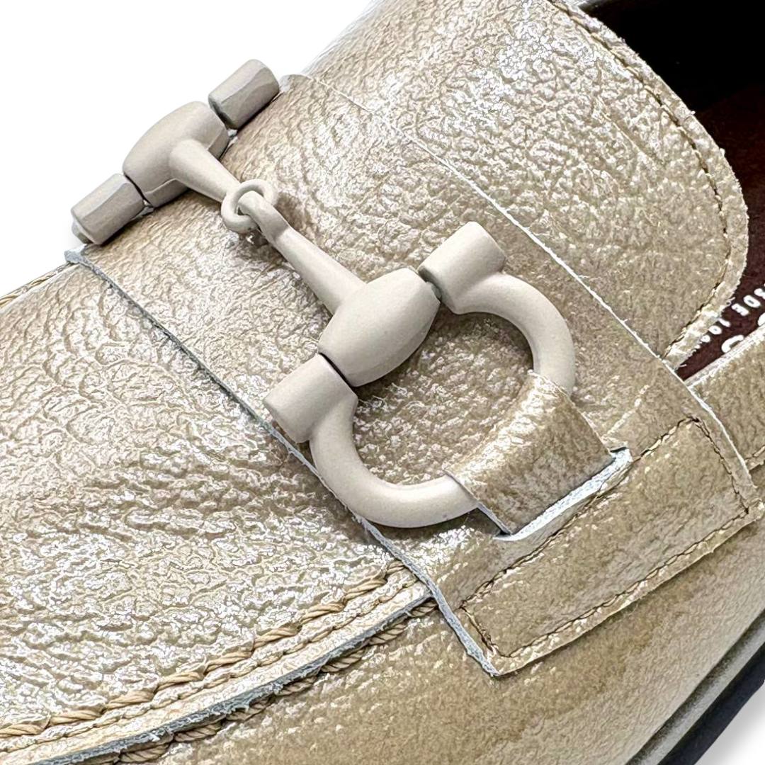 Además su diseño de mocasín con detalle de metal en el empeine es minimalista, dandolé un aspecto muy elegante. Incorpora una suela flexible y ligera, con un poquito de plataforma, ideal para caminar largas distancias sin fatiga, y un forro interior suave y transpirable que cuida el pie. Este zapato versátil combina con cualquier look urbano o informal, ofreciendo una excelente relación entre confort y elegancia.