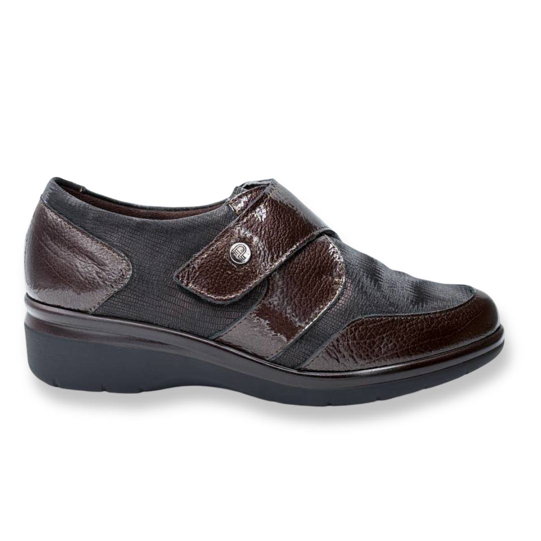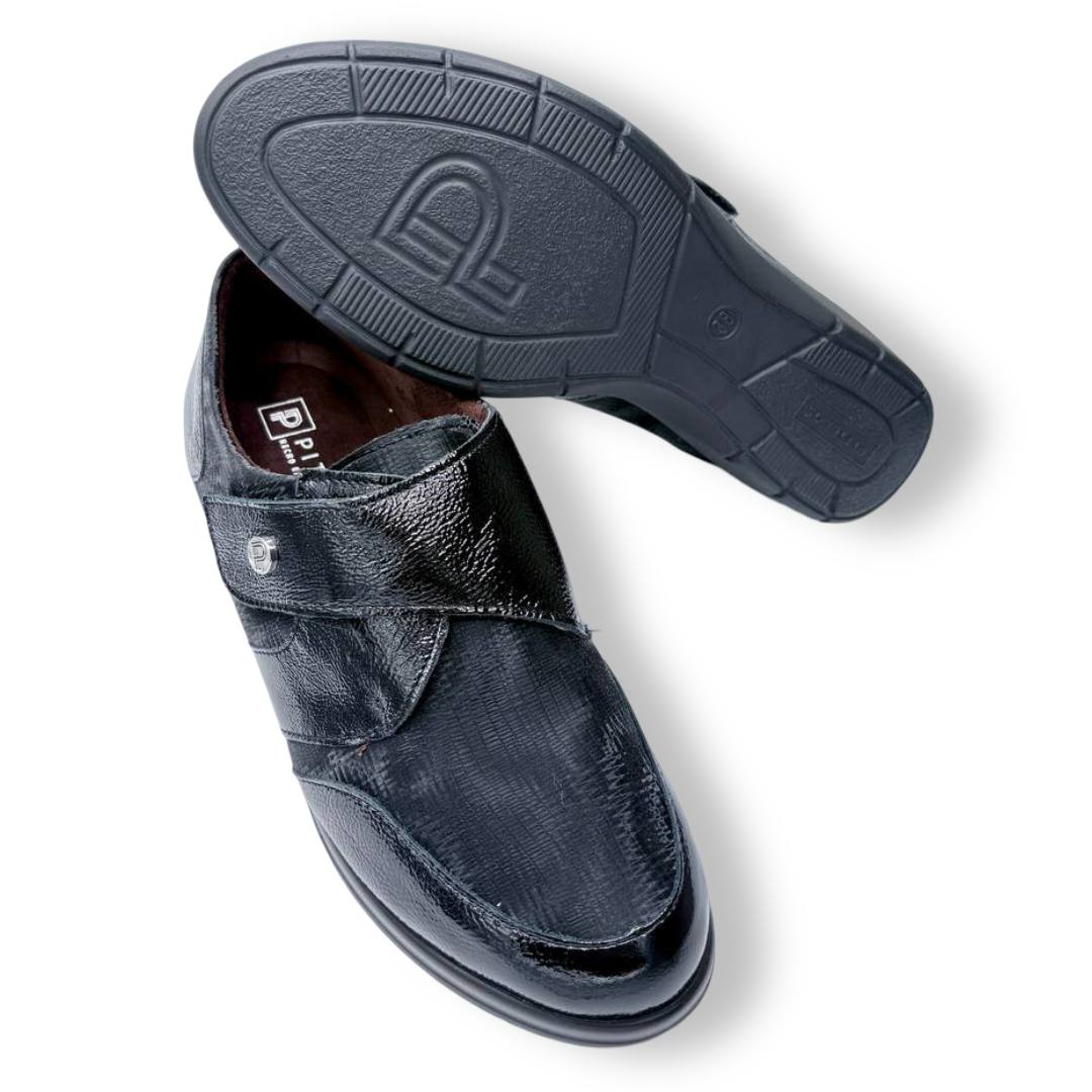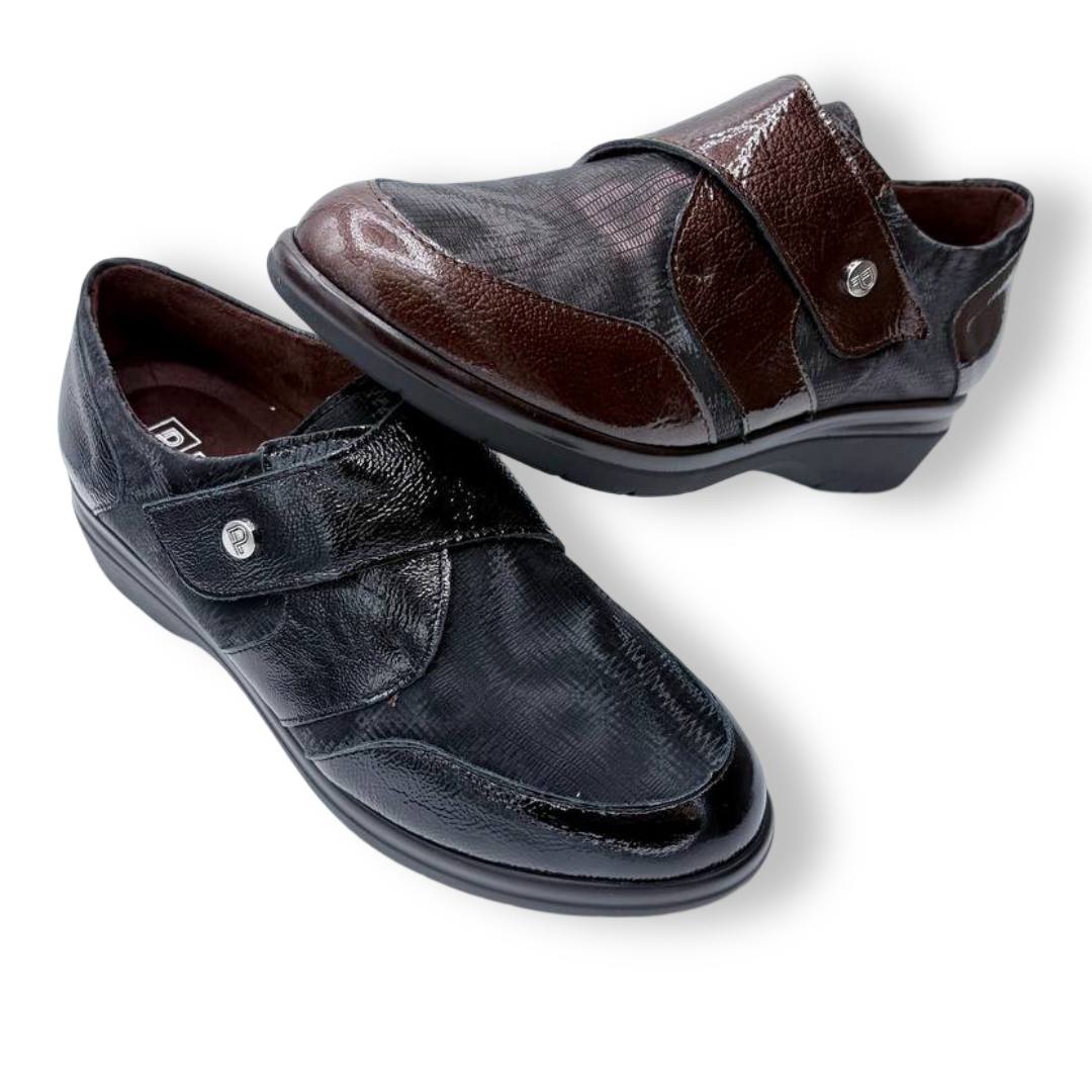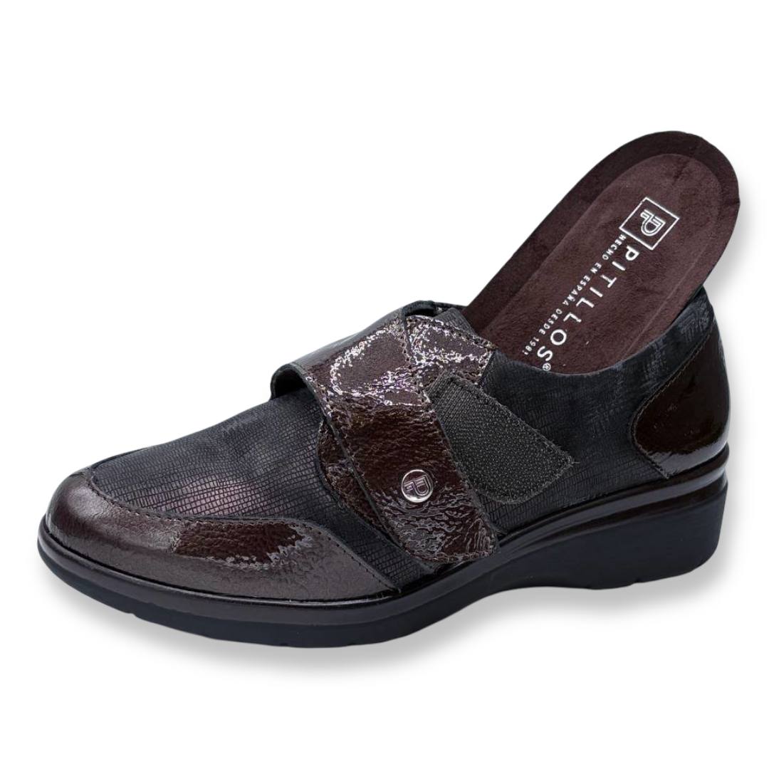Los PITILLOS 10721 marrones y negros son un modelo de estilo casual ideal para quienes buscan comodidad y estética sencilla. Fabricados en piel acharolada, ofrecen un ajuste cómodo y transpirabilidad óptima. La suela de cuña, es ligera y flexible, lo que permite caminar con total seguridad.