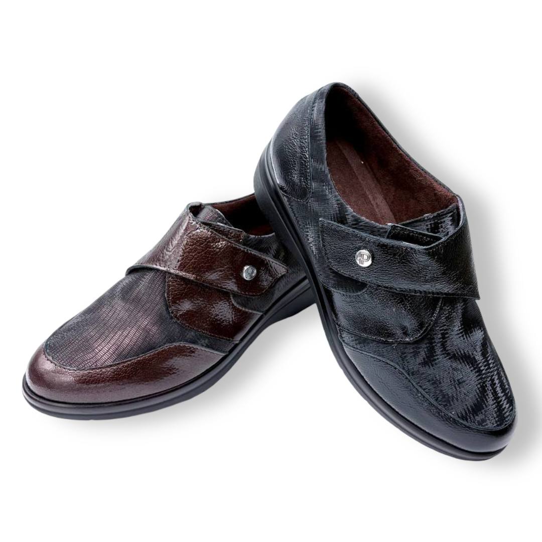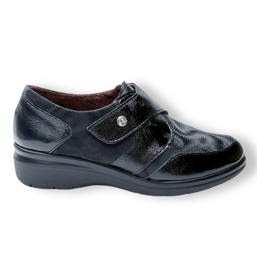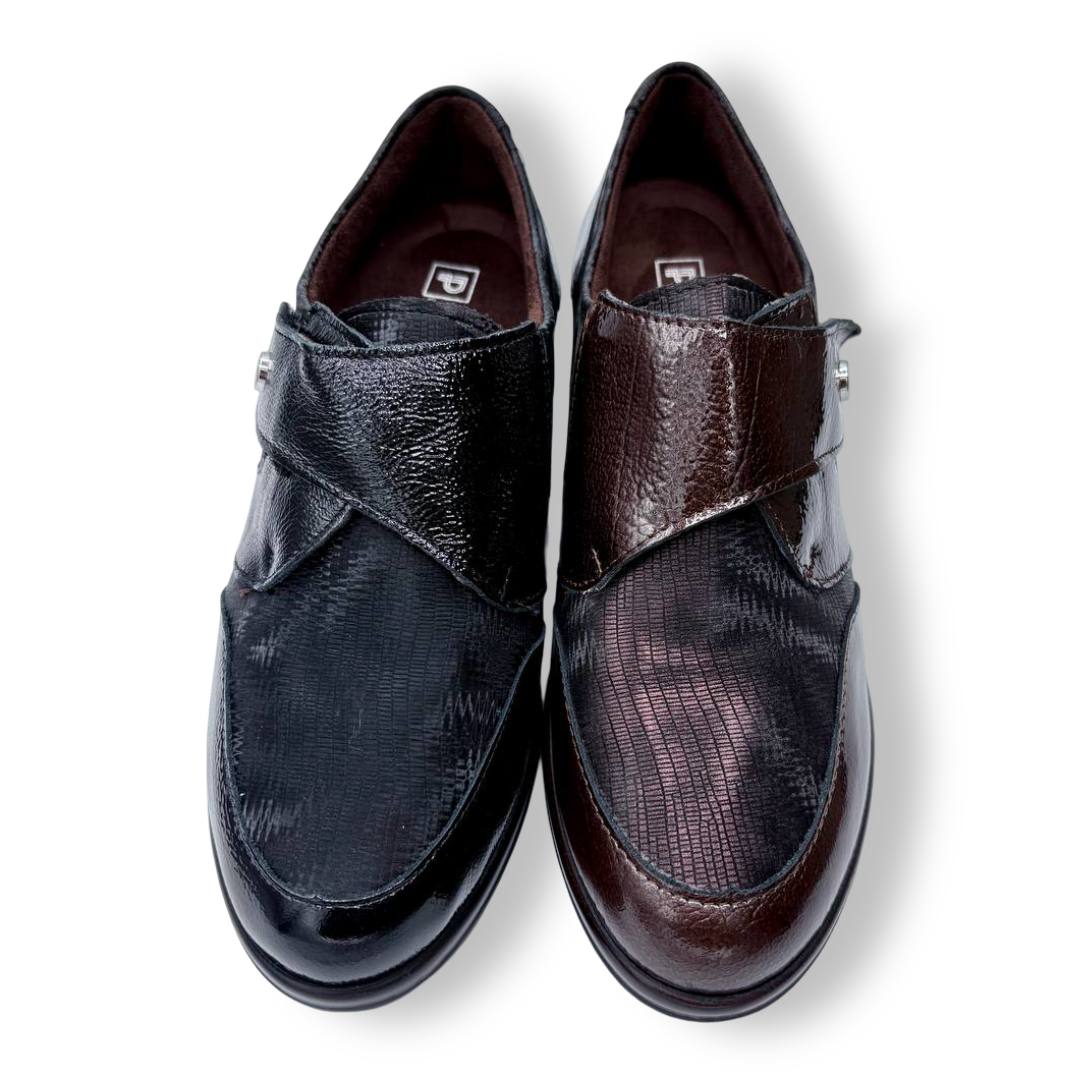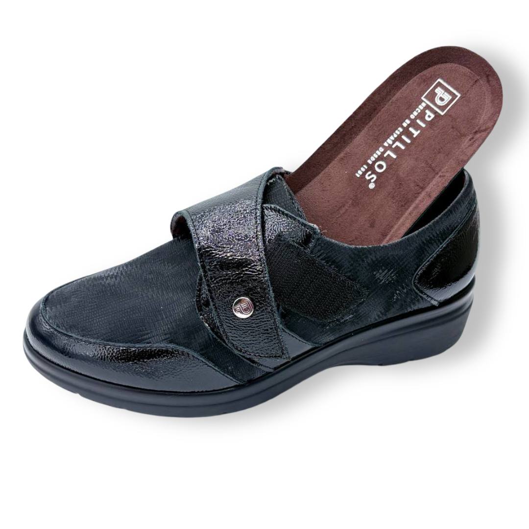 Los PITILLOS 10721 marrones y negros son un modelo de estilo casual ideal para quienes buscan comodidad y estética sencilla. Fabricados en piel acharolada, ofrecen un ajuste cómodo y transpirabilidad óptima. La suela de cuña, es ligera y flexible, lo que permite caminar con total seguridad.